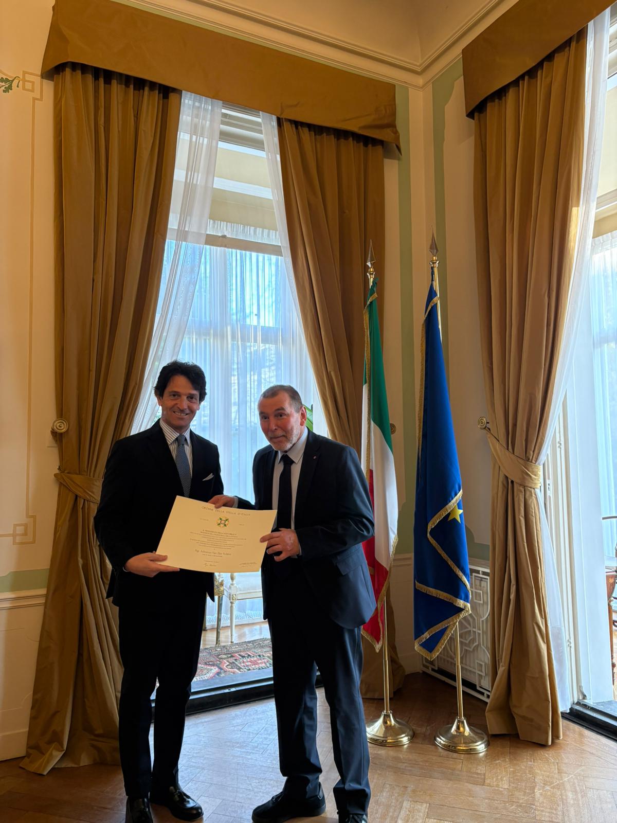 Ieri pomeriggio a L’Aia, presso la Residenza dell’Ambasciatore d’Italia nei Paesi Bassi, si è svolta una cerimonia ufficiale di conferimento delle onorificenze dell’Ordine della Stella d’Italia (OSI).